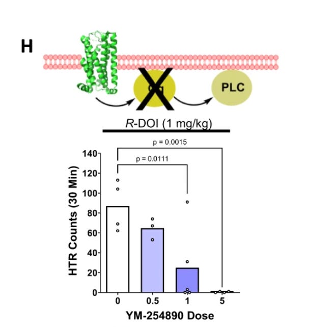 Studies by the McCorvy group show, in direct contradiction to these results, that blocking Gq blocks the head-twitch-response (HTR); the YM compound is extremely selective for Gq/11
